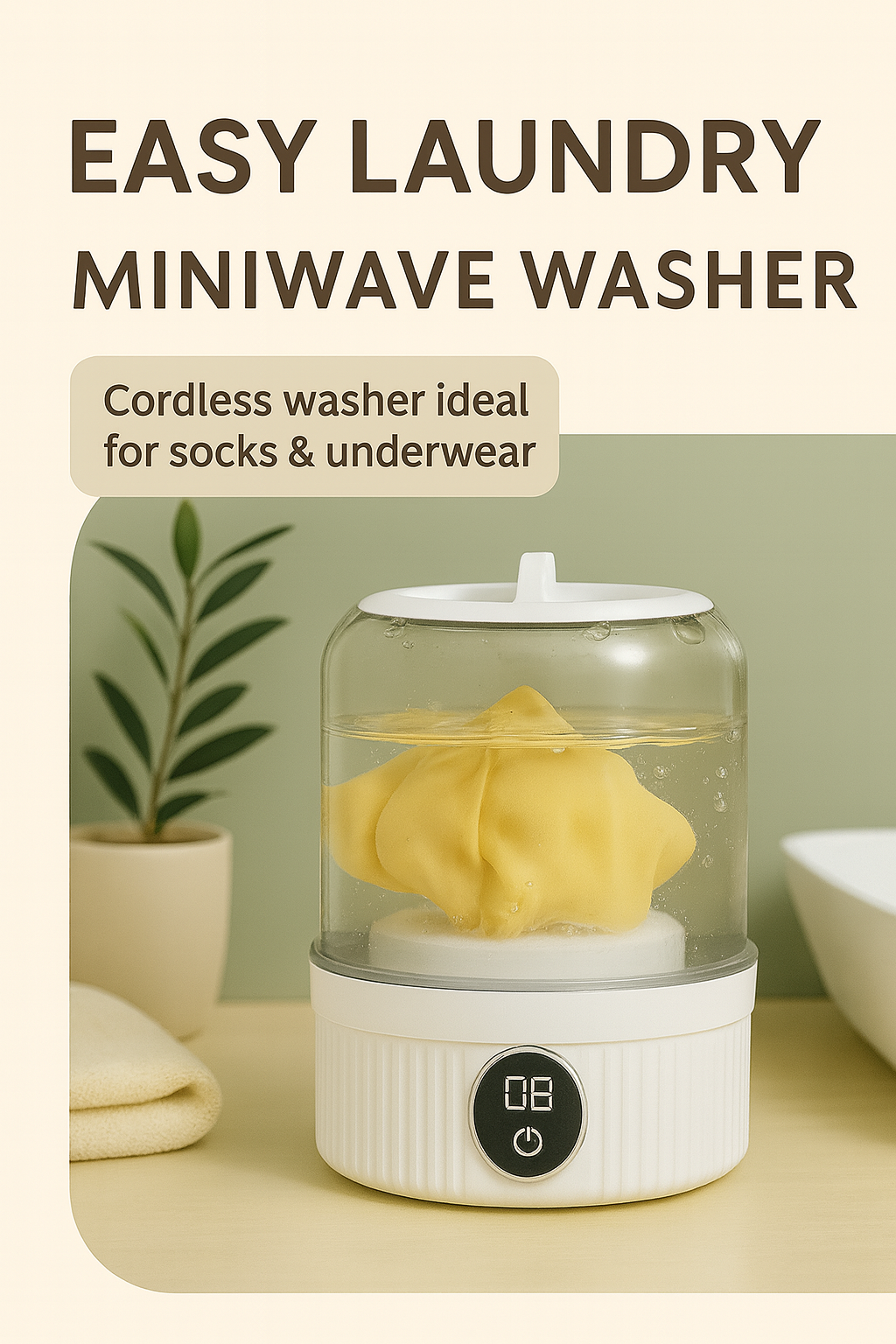 Tired of struggling with dirty socks, underwear, or baby clothes when you’re traveling or short on space? You’re not alone. The MiniWave Washer helps you take back control — giving you a quick, gentle way to keep your essentials fresh and clean wherever life takes you. No bulky machines, no hand washing, no stress. Just simple, portable washing that keeps you confident and comfortable every day.